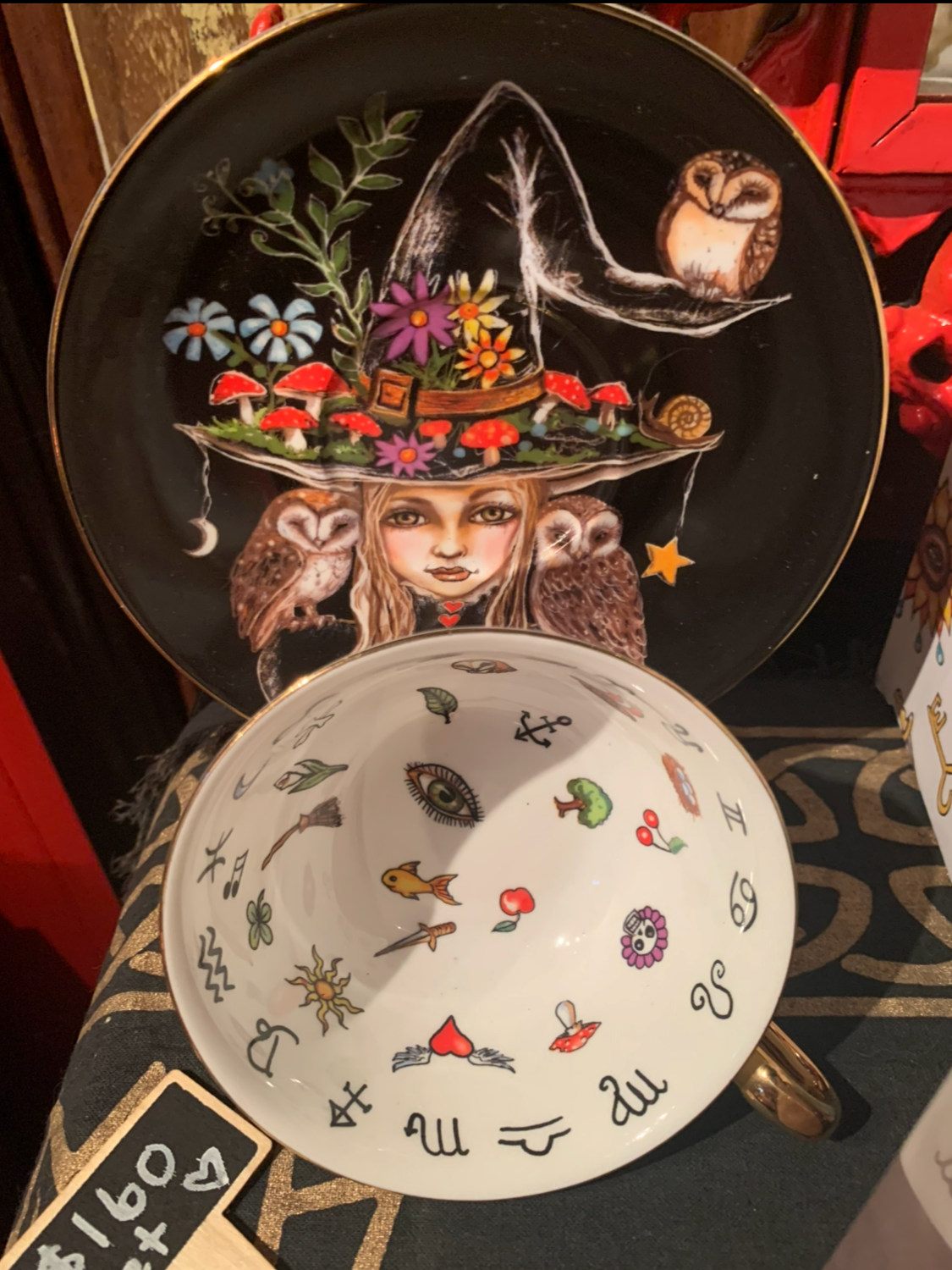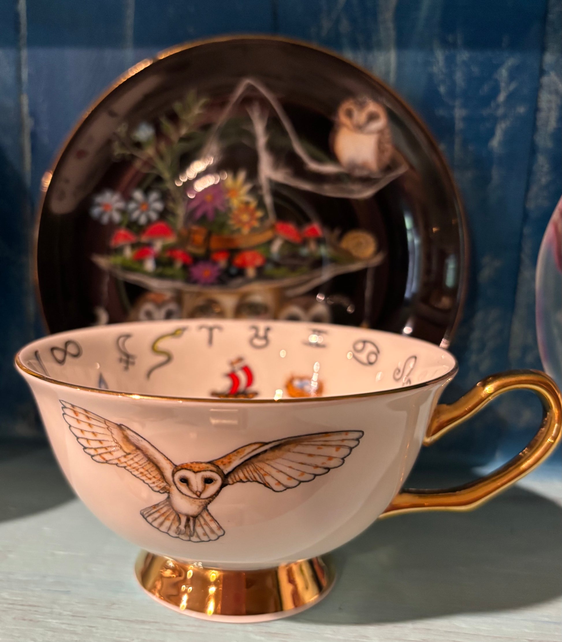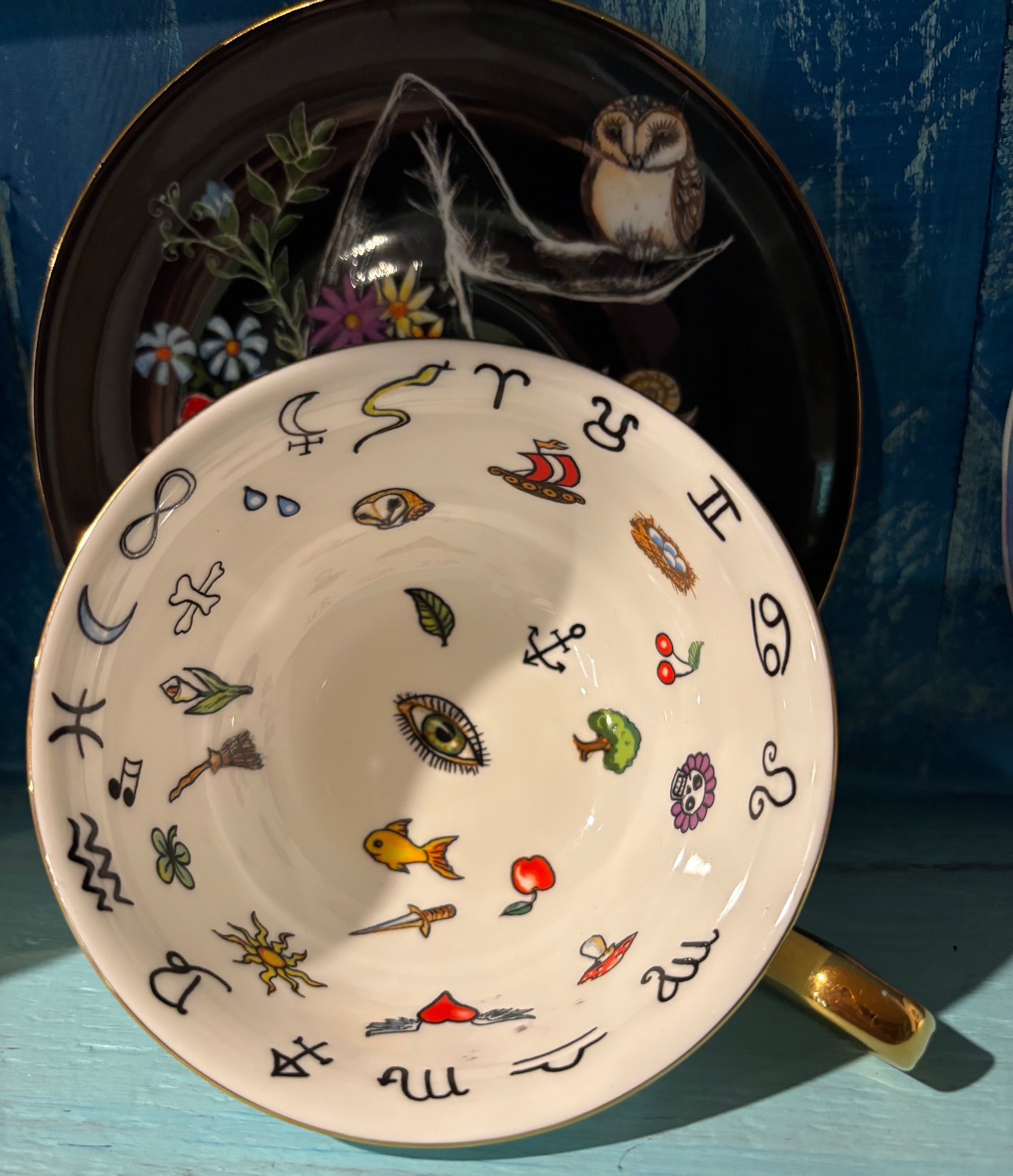This beautiful fortune telling cup and saucers is part of Sharon’s range of divination cups and saucers. Designed by Sharon and shows her love of symbols and all things divine and magical.
