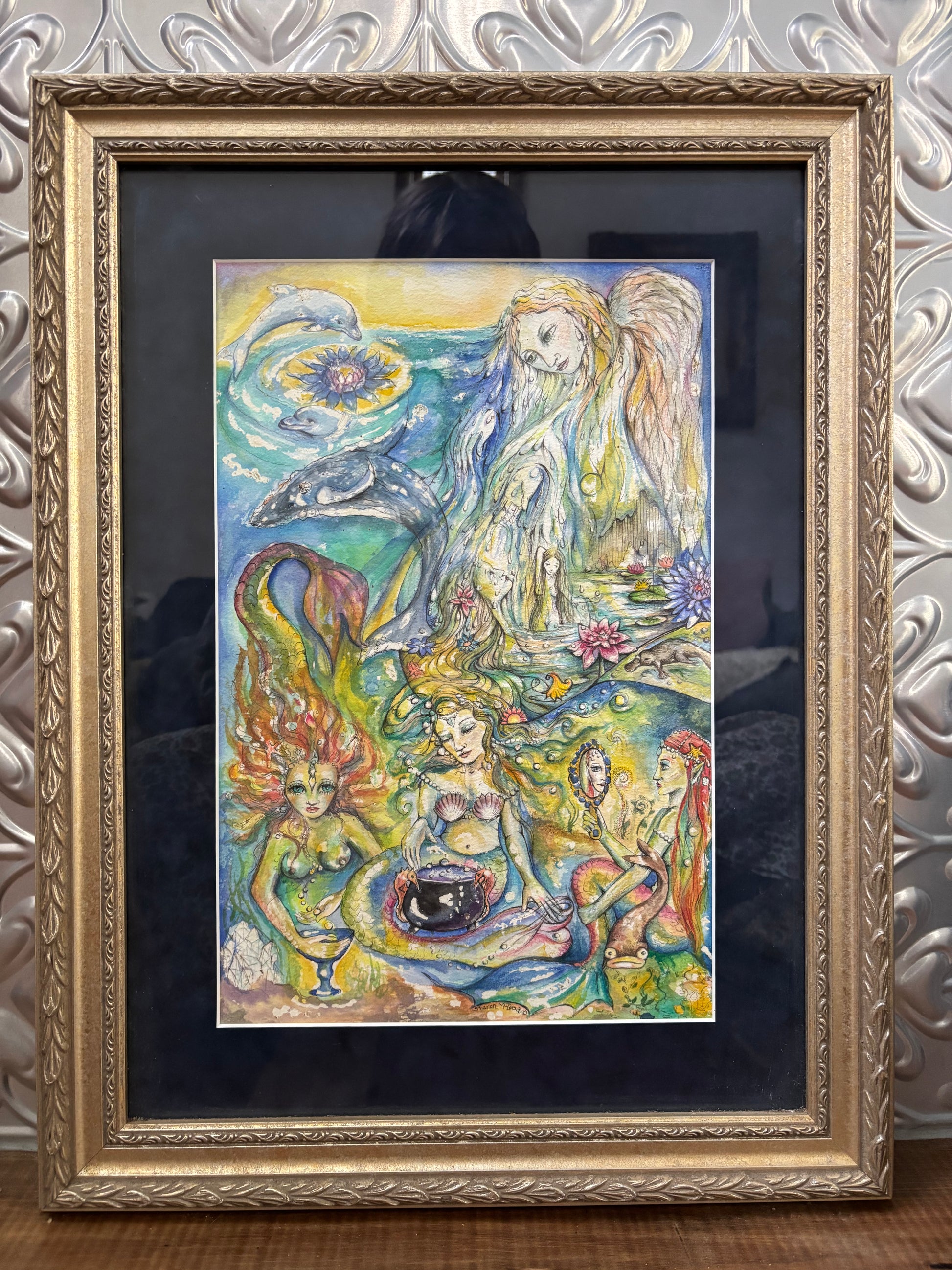 Infused with meaning and love for the mermaids ,this artwork is deeply symbolic, showing the connection between the merfolk and the oceanic animals that inhabit this earth.